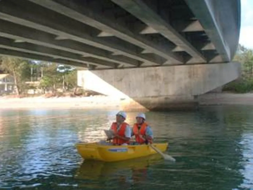 土木一般測量、鋼構造及びコンクリート『橋梁等の』調査・試験・診断、土質・地質調査等を行います。